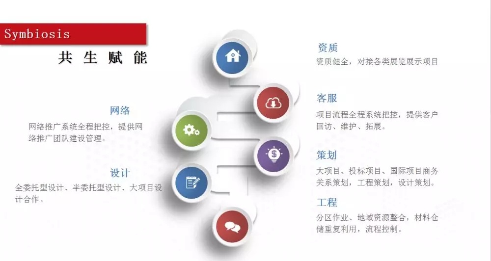 畢加與企業(yè)間將在資質(zhì)上實(shí)現(xiàn)共享,畢加擁有健全的資質(zhì),可以對(duì)接各類展覽展示項(xiàng)目等。同時(shí)網(wǎng)絡(luò)方面也將實(shí)現(xiàn)輔助,網(wǎng)絡(luò)推廣系統(tǒng)全程為合作企業(yè)進(jìn)行把控,提供網(wǎng)絡(luò)推廣團(tuán)隊(duì)建設(shè)管理等。客服方面實(shí)現(xiàn)項(xiàng)目流程全程系統(tǒng)把控,提供客戶回訪、維護(hù)、拓展等。在有設(shè)計(jì)需求的情況下提供全委托型設(shè)計(jì)、半委托型設(shè)計(jì)、大項(xiàng)目設(shè)計(jì)合作等。策劃師也將為您提供大項(xiàng)目、投標(biāo)項(xiàng)目、國際項(xiàng)目商務(wù)關(guān)系策劃,工程策劃,設(shè)計(jì)策劃等。工程方面會(huì)為您提供分區(qū)作業(yè)、地域資源整合,材料倉儲(chǔ)重復(fù)利用,流程控制等。